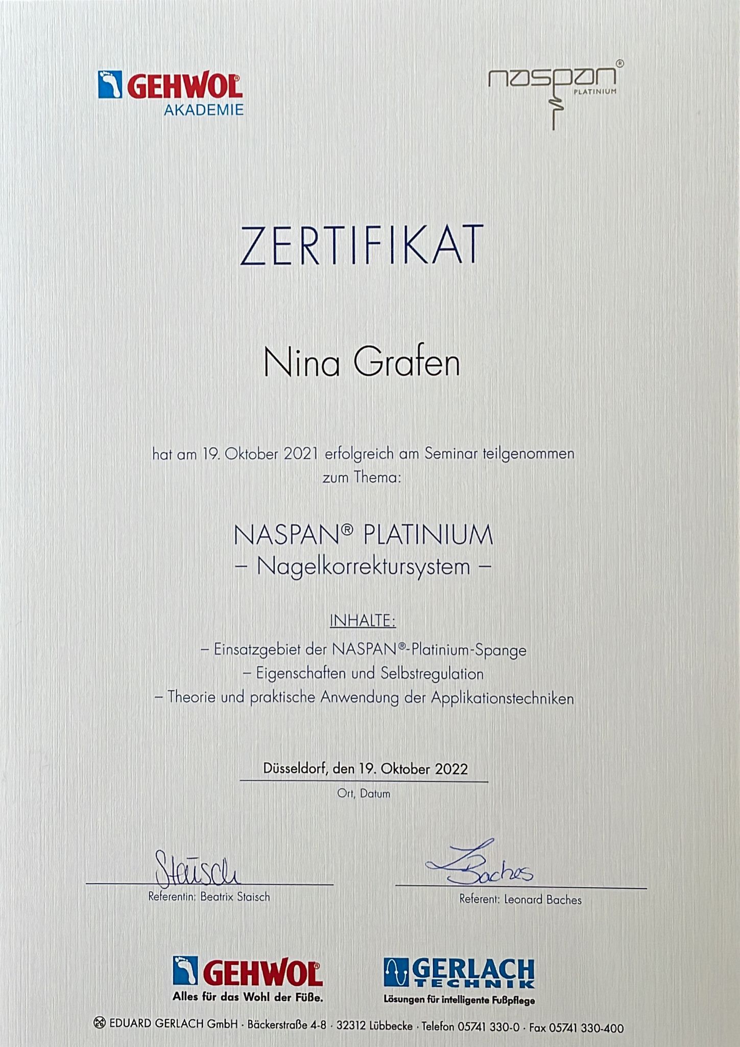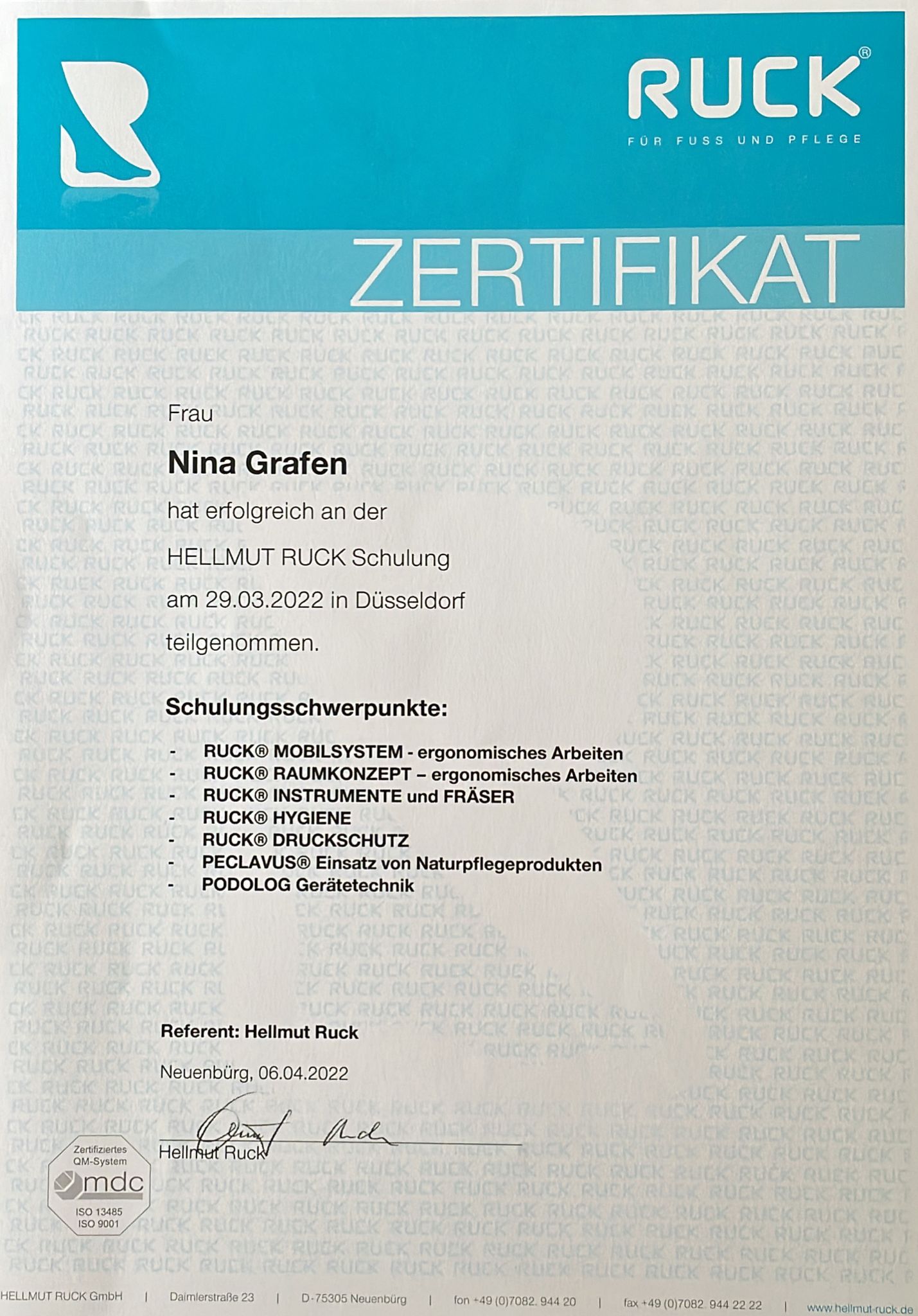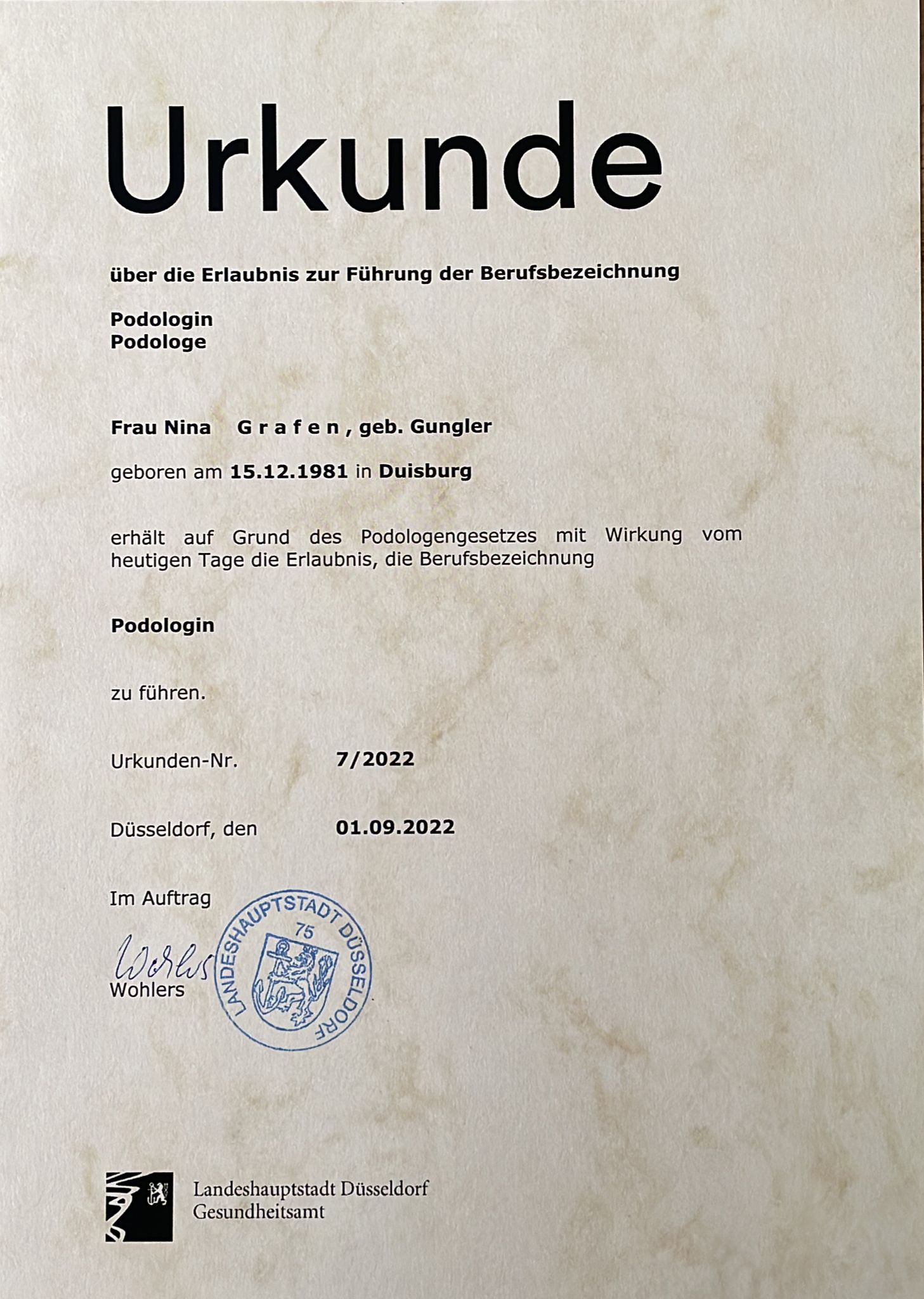 Mein Name ist Nina Grafen und ich bin auf die Behandlung, Pflege und Gesunderhaltung für gesunde und schöne Füße spezialisiert.