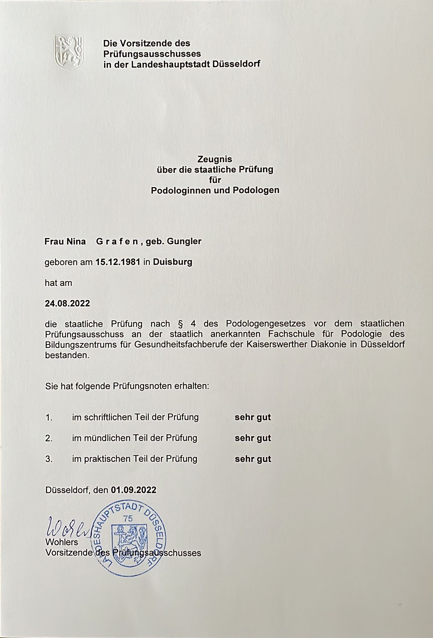 Dafür werden modernste Behandlungsmethoden und hochwertige Produkte verwendet. Als ausgebildete und zertifizierte Podologin bin ich qualifiziert, um mich um das Wohlergehen und die Gesundheit Ihrer Füße zu kümmern.